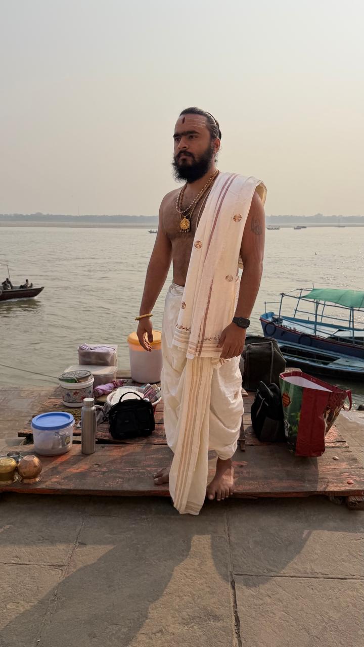 With deep knowledge of Kashi’s sacred traditions and rituals, Gokula Nandam Pawan Kumar Sastri is an experienced Tirth Purohit dedicated to guiding devotees through authentic Vedic pujas in the holy city of Kashi. Well versed in the customs, temples, and spiritual significance of Kashi Kshetra, he helps devotees perform all kinds of pujas with proper vidhi and devotion. He is here to assist everyone in fulfilling their spiritual intentions, whether it is a simple sankalp, special temple rituals, ancestral rites, or elaborate Vedic ceremonies.
